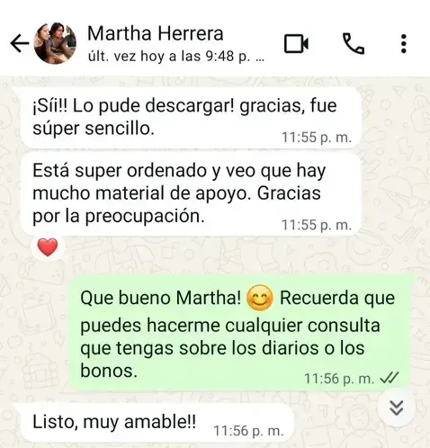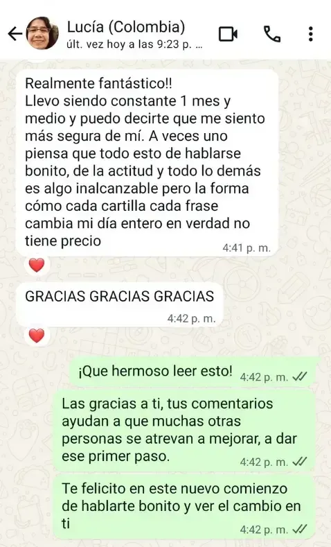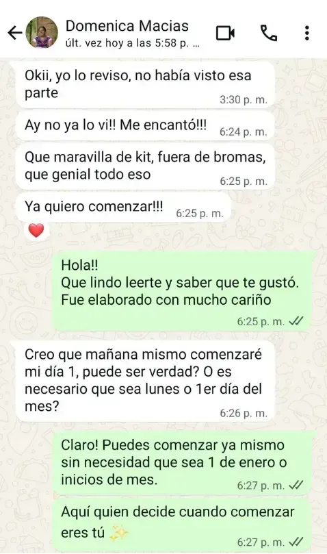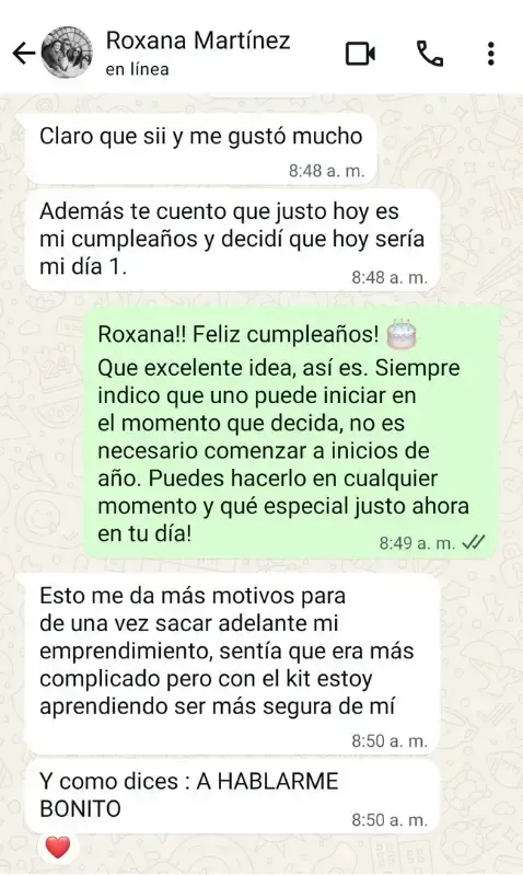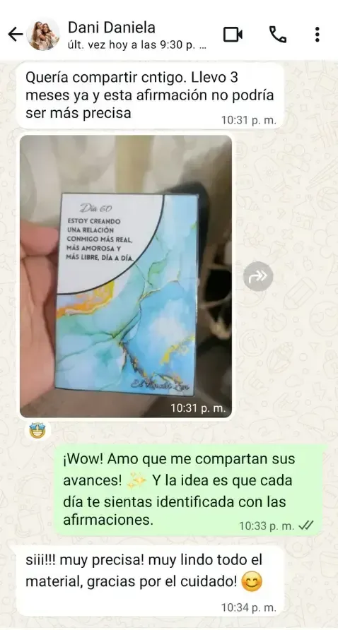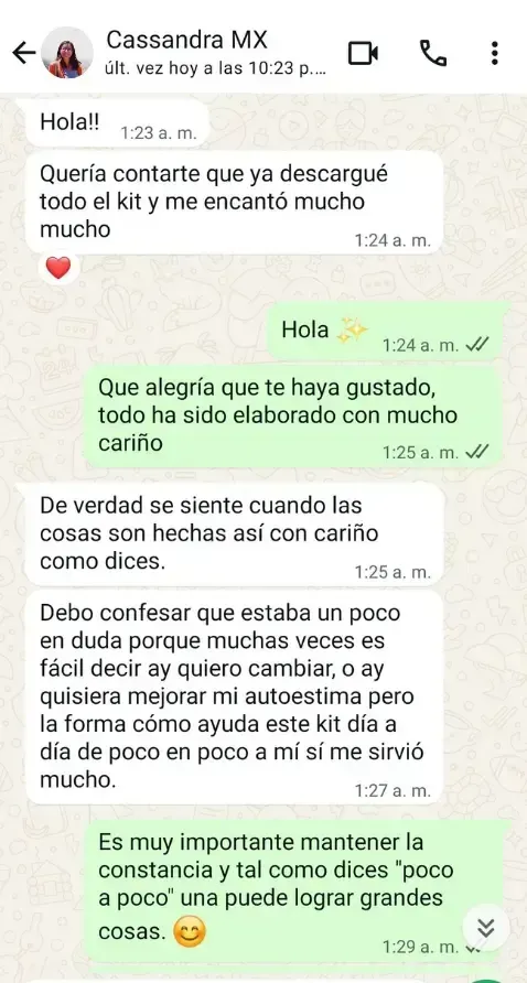 ¡Por supuesto! Al adquirir tu Kit de Afirmaciones Diarias: Un Año de Amor Propio, tendrás acceso a conversar conmigo directamente y así compartir tus progresos, recibir apoyo y resolver cualquier duda que puedas tener. ¡Lo emocionante es compartir con alguien cómo uno se siente!